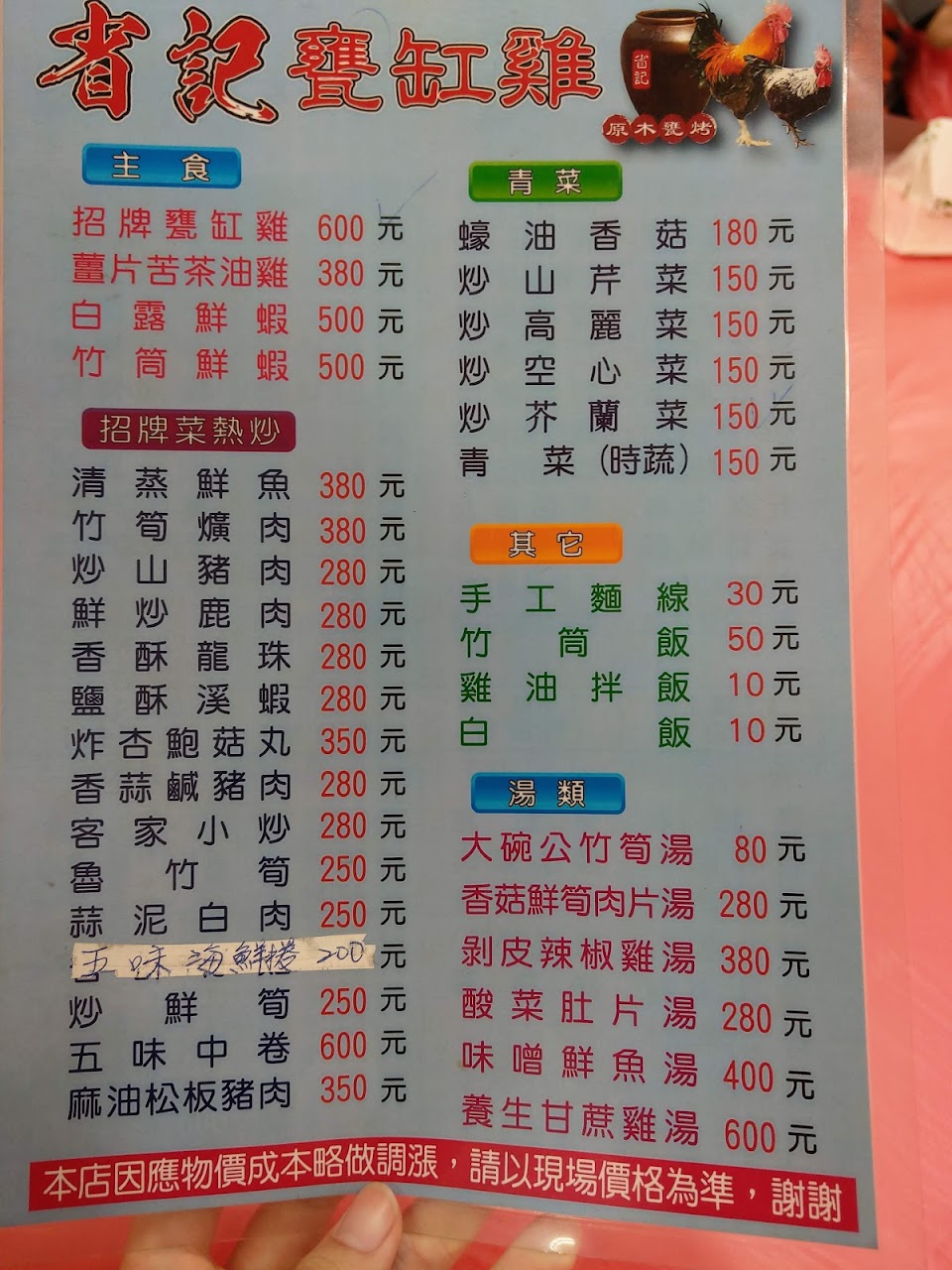2024最新在地推薦餐廳的菜單_省記甕缸雞的菜單、圖片