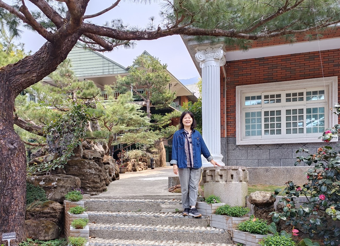 山景、玫瑰花、原木桌椅,相映成趣,值得一遊