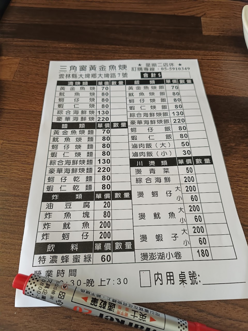 在Google Maps上發現有著心心念念的土魠魚,趁著放假的時間便來品嚐;點菜完後看著絡繹不絕的客群,想著開店在距離鬧區偏遠的地區依然有著許多熱愛美食的客人們。