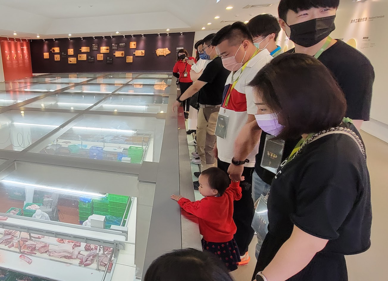 參觀的部分,沒有導覽員導覽,但是牆壁上有qrcode,打開相機掃qr code就可以聽到導覽.把工廠的歷史和豬的一生,豬吃什麼,豬可以做成什麼都介紹了,來到觀光工廠最想看到的就是看到工廠的工人在工作裁切包裝,可能因為假日所以沒開放,