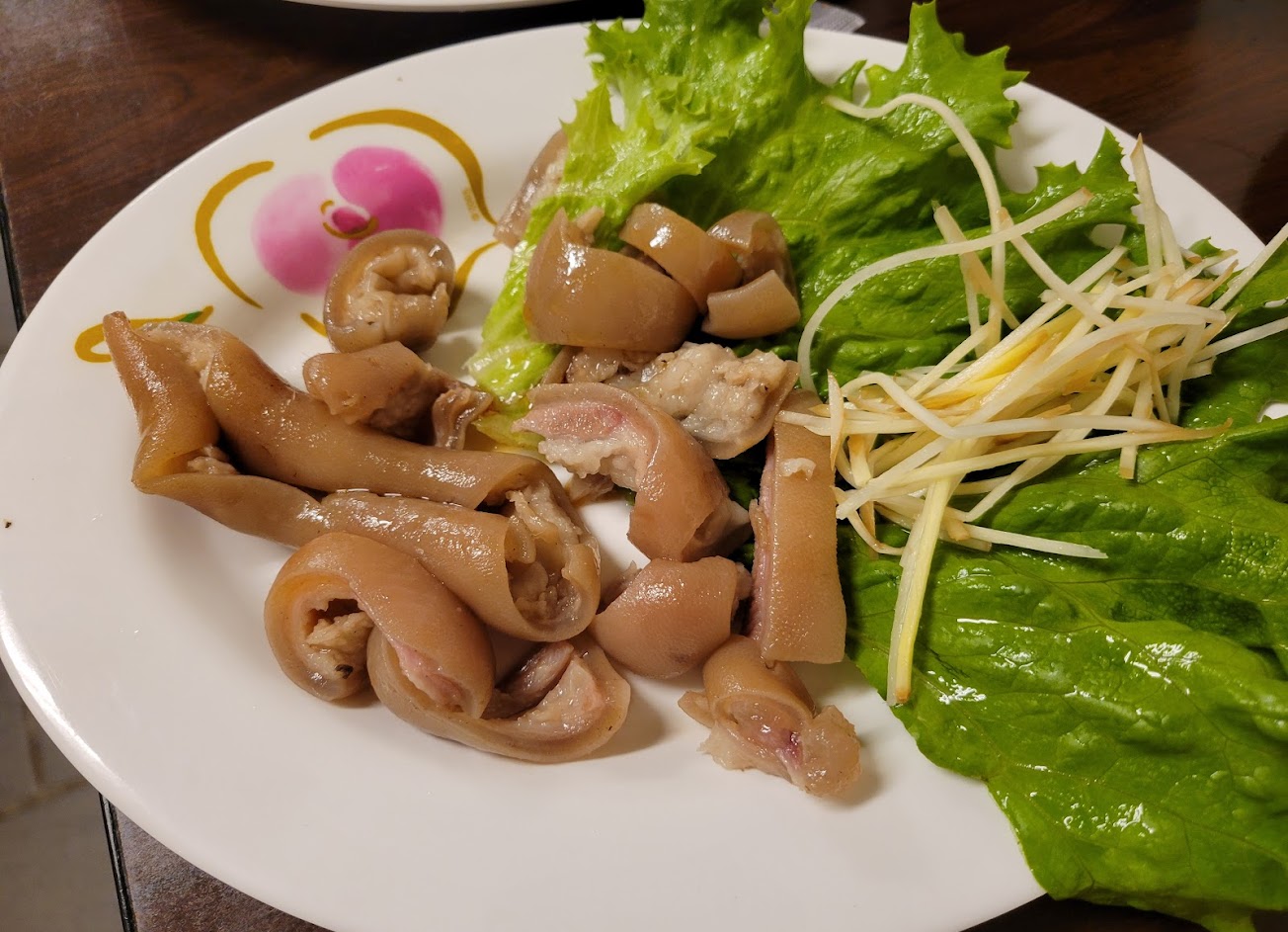 現宰羊肉,藥膳清湯,五花肥而不膩又帶嚼勁,瘦肉嫩而不柴,今天點了羊肚炒芹菜跟羊肉炒空心菜,店家招待一盤粉腸,都很好吃,還有豆瓣醬味道真的?
