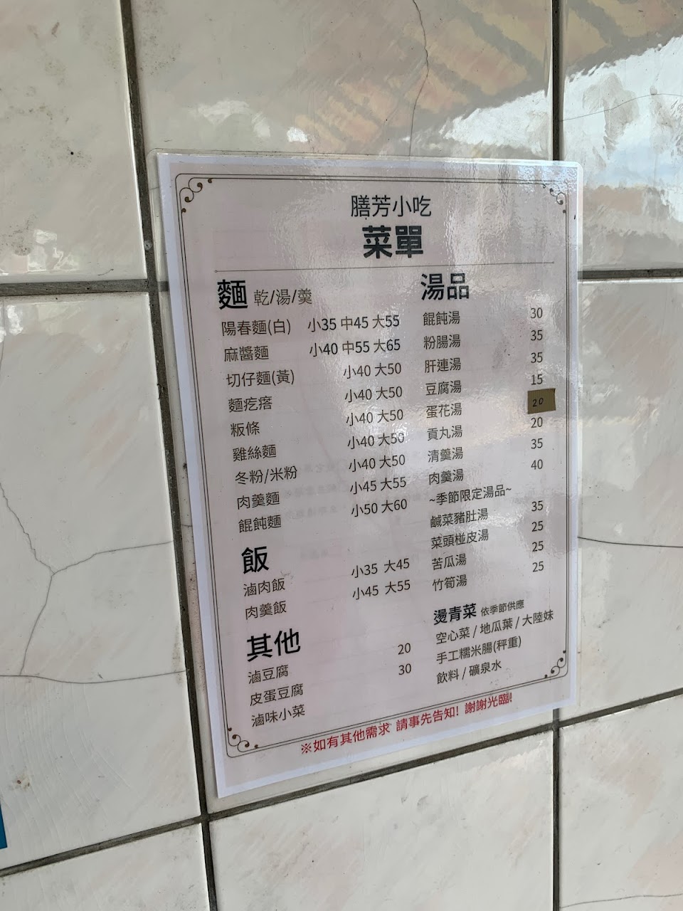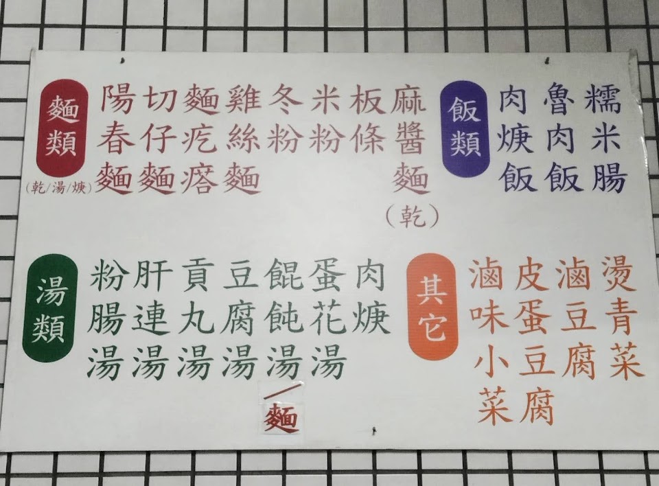 膳芳小吃(麵疙瘩、糯米腸、魯肉飯、麵類、各式小菜)
