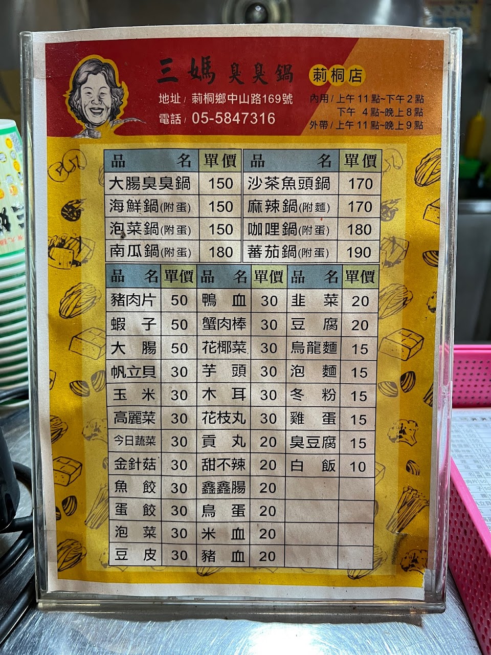 2024最新在地推薦餐廳的菜單_三媽臭臭鍋雲林莿桐店的菜單、圖片