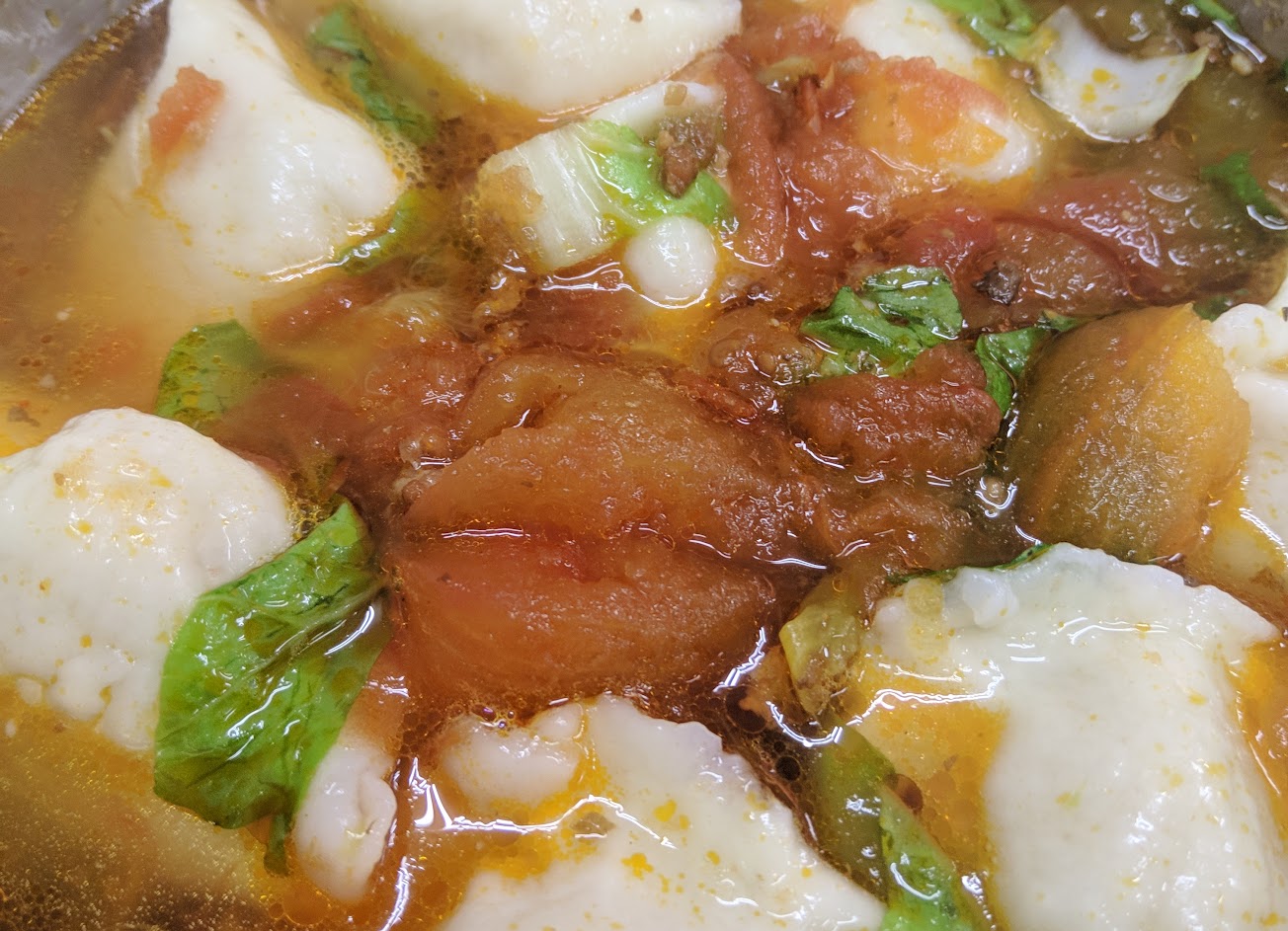 番茄湯頭帶有點鹹甜的味道,麵條沒有煮的很熟(麵條中央還看得到麵粉)。