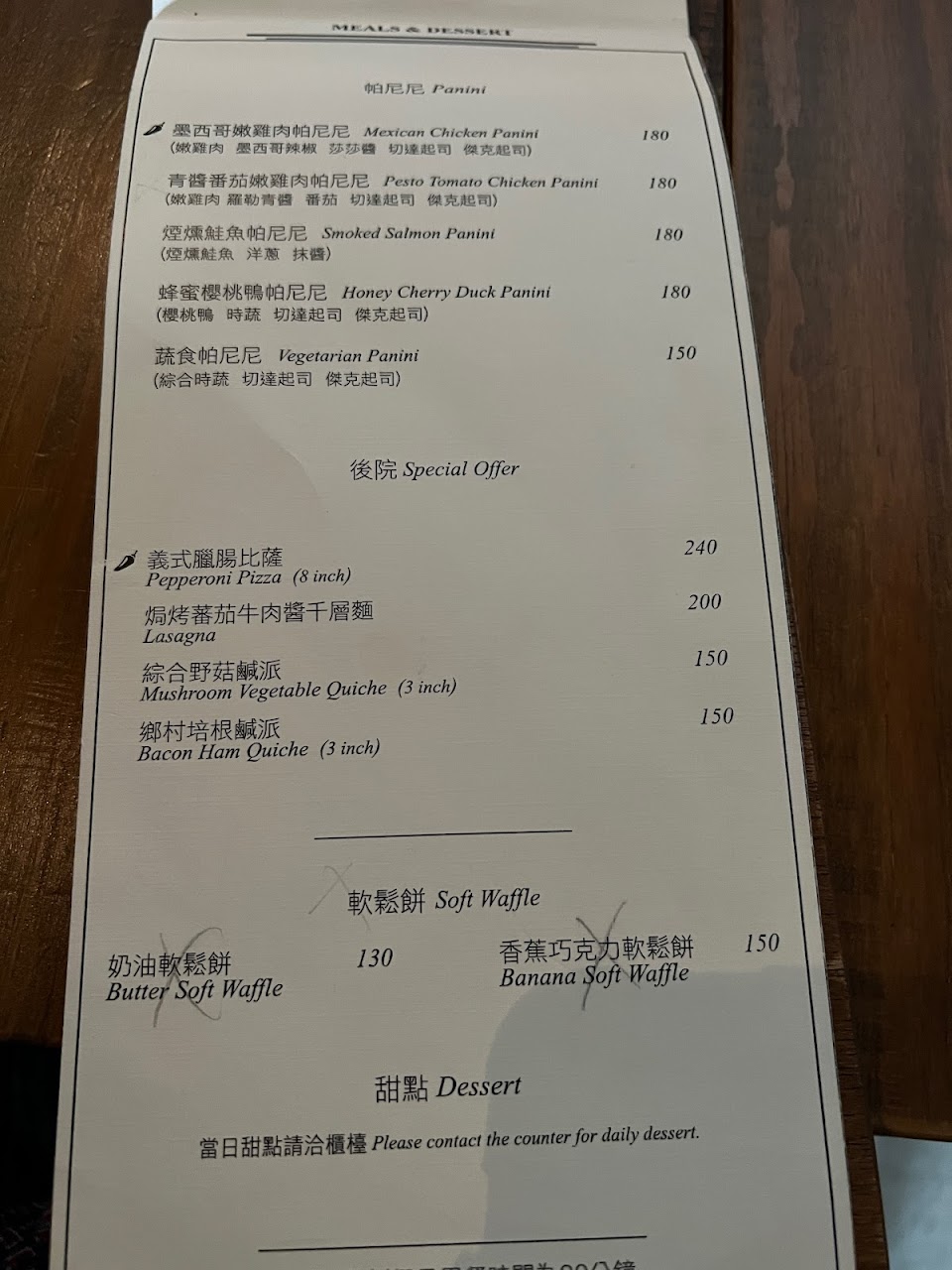 提拉米蘇的咖啡酒味道濃郁,cream的口感滑順濃而不膩。熱壓吐司吐司酥脆不硬,內餡的料理也很夠味,如果餡料能再多放一些更加完美??