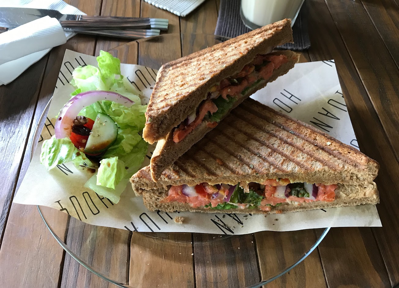 舒服放鬆,室內戶外皆有不同風格,處處有些巧思,很有生活品味的店 今天點的是蜂蜜櫻桃鴨帕尼尼、上海茉莉荔枝、焦糖瑪其朵
