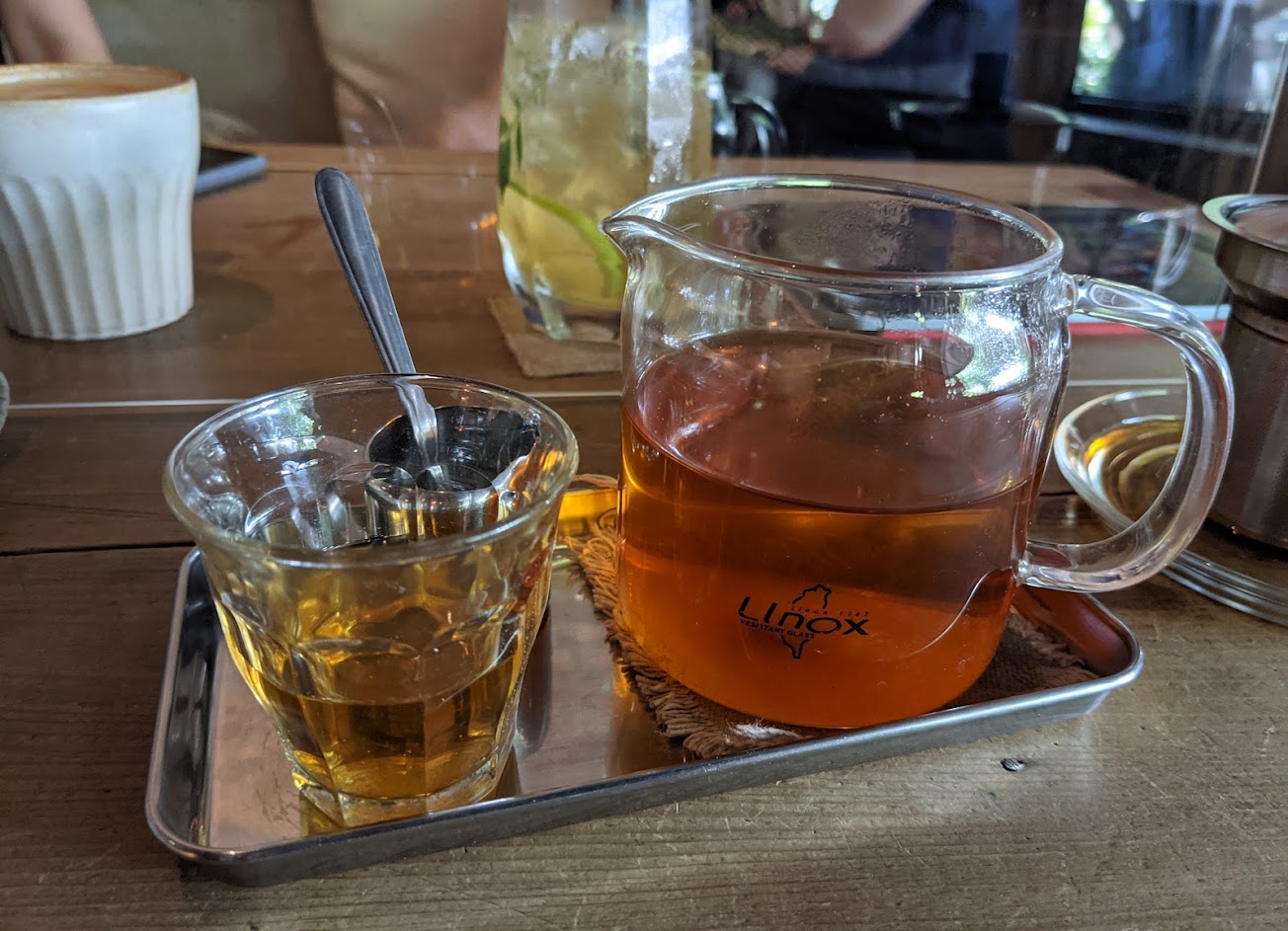 很有氛圍的院子,在樹叢後繞個彎就可以看到美美的門口,店內擺設各有風味,點了蜜醋蘇打,很不錯,好喝。提拉米蘇也不錯,略有酒香的手指餅乾,剛剛好的濕潤。 晚上還有Bar營業,有機會可以那個時間點去看看。