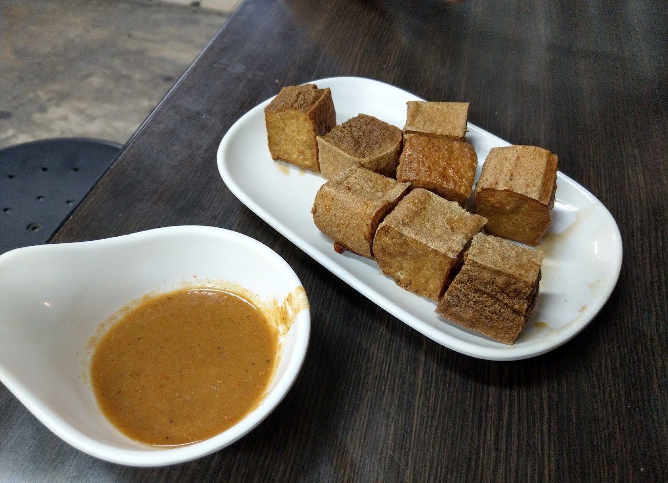 陽春乾麵很大一盤,麵條好吃!炸豆腐跟燙地瓜葉也不錯~