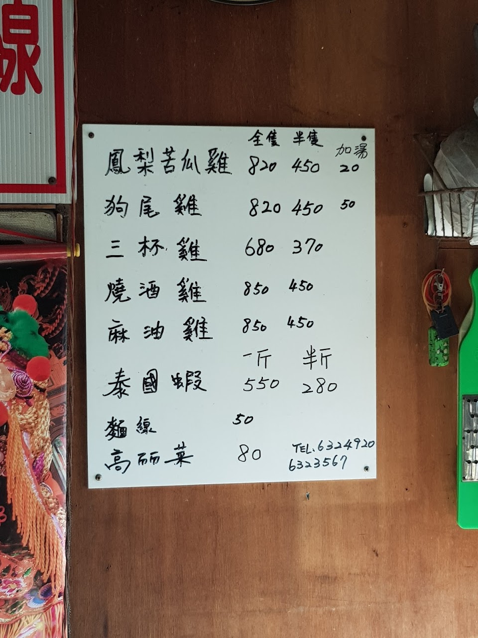真材實料鄉土料理,菜色只有鳳梨苦瓜雞,狗尾雞,烤泰國蝦,拌麵線,炒高麗菜這五種,但都很好吃!隔一陣子就要去報到ㄧ次。