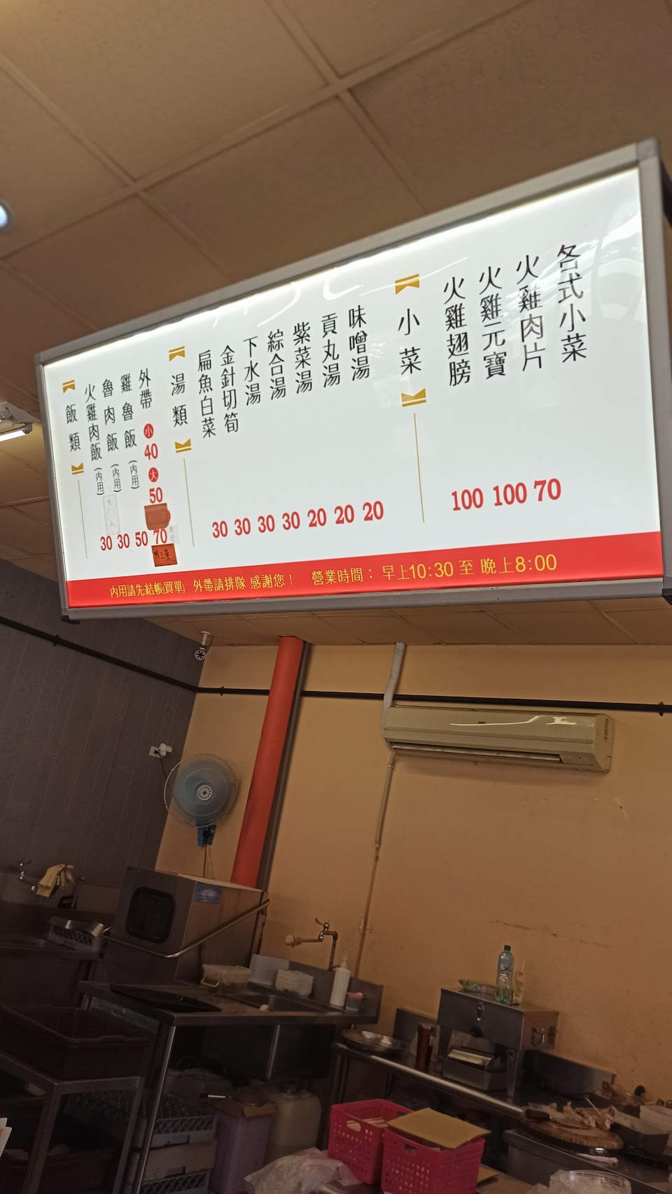 看著高品價,來嚐鮮。 結果過年期間人多,店員自己都忙到亂,沒提供*點菜單*說要*排隊點餐*,結果看到一位顧客直接在很後面喊說要4碗飯,結果店員就直接拿給他了,排在前面的兩個人與我當下超無言的。 結帳時還要提醒剛剛自己點了什麼,他們才有辦法算錢。 點了上面只有零星小碎肉的火雞肉飯與一盤約6片肉要50元小菜,整體下來的感覺不是很好。
