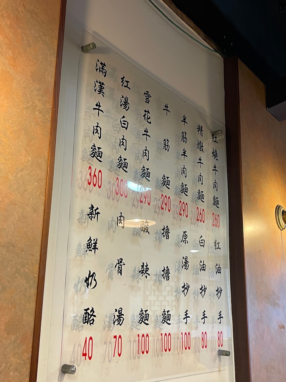 進來吃的原因是好像曾經聽過名人介紹!ㄧ看菜單的價格,心裡期待著端上來的能勝過我心中第一的永康牛肉麵!