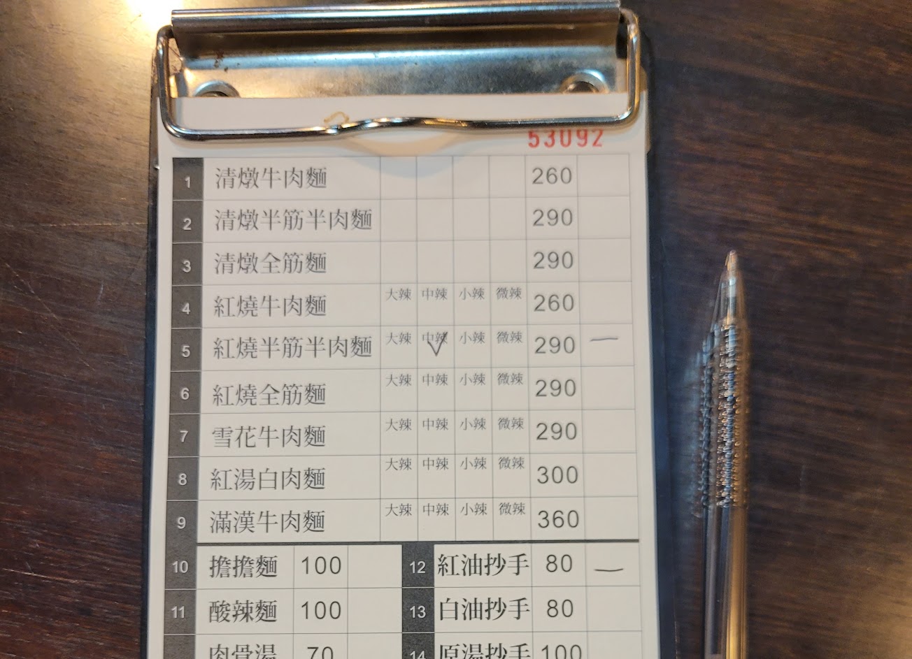 我上週六去吃的,那次點了牛肉麵、紅油抄手、豆干和飲料
