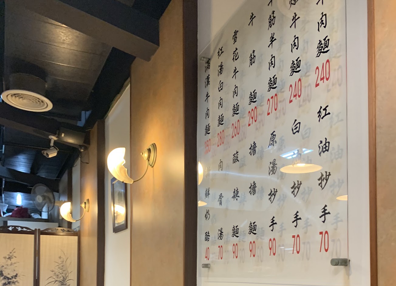 鄰近吉林路的民生東路二段上,這間在中山區近來與附近的神仙川味牛肉麵一同負譽盛名的牛肉麵店家似乎也因為疫情的影響顯得來客甚少,本來略顯小間的店面也在這時期顯得寬敞的多;以厚重的傳統中式重木桌椅配上木板和石板狀的牆面,挺像是在郊區的獨棟店面裡用餐的感覺。