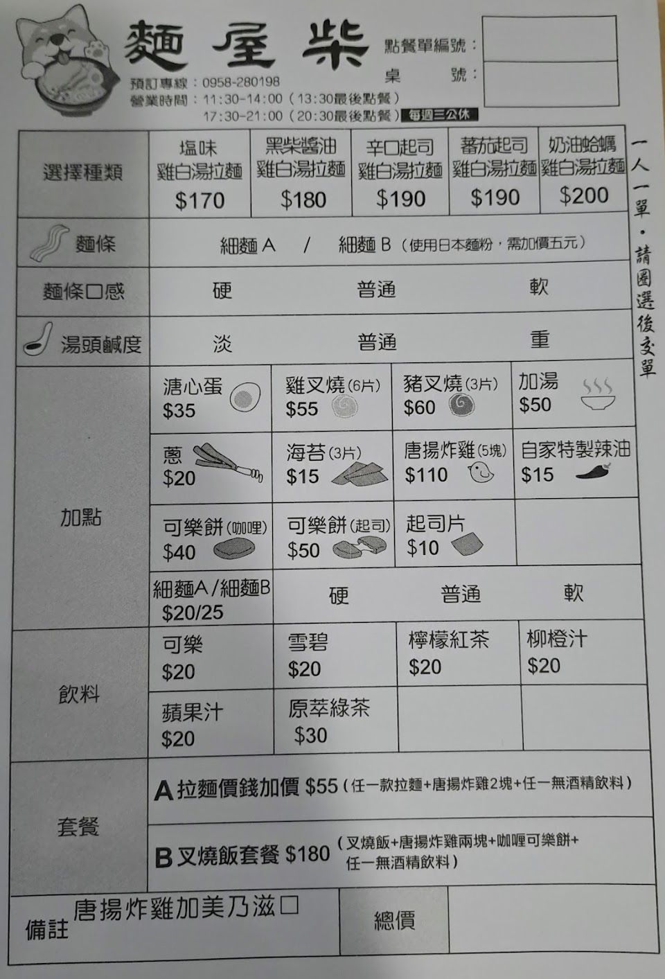 2024最新在地推薦餐廳的菜單_麵屋柴 雞白湯麵專賣店的菜單、圖片