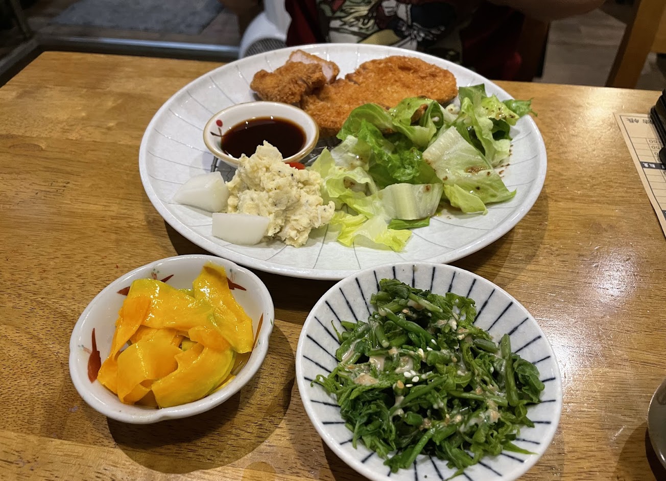 餐點的部分,小菜都令人驚艷,主食的部分炸豬排就一般水準,米飯些許部分覺得乾硬,友人覺得味噌湯稍鹹,個人希望店家可以放些豆腐,白蘿蔔有點太多。