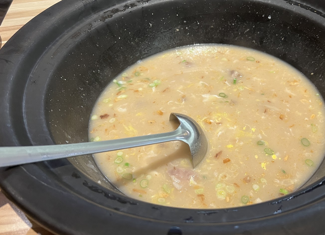 然後用餐到尾聲其實我用火鍋湯底煮了粥,但我在等我男友吃冰淇淋,淺色長髮女服務員連問都沒問直接將我所有的鍋子盤子直接收走