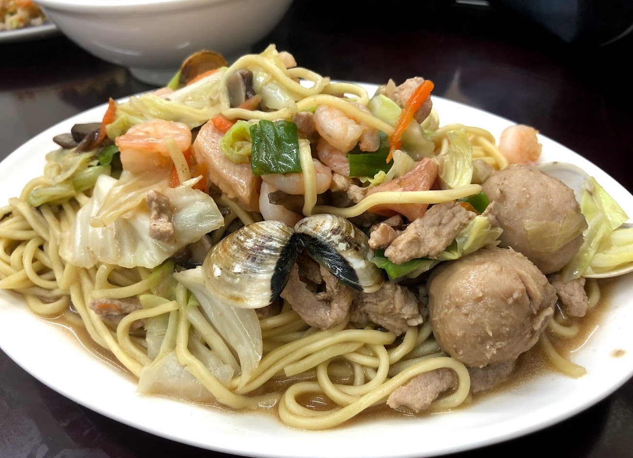 海鮮麵,蝦仁,花枝,小卷,魷魚,蛤蜊份量多,湯頭清甜不死鹹,超大一碗才80元,真的是物美價廉又好吃。店面也乾淨。