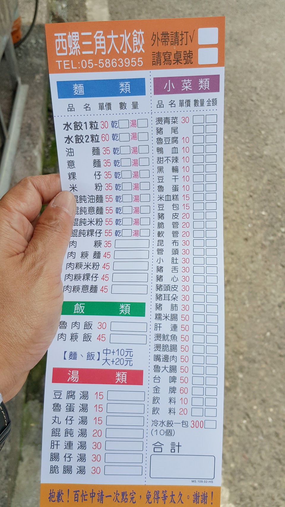 大水餃好吃,吃起來很像肉圓,醬很讚,但用餐環境不太好,老闆人手不足需要等很久(30分鐘以上)