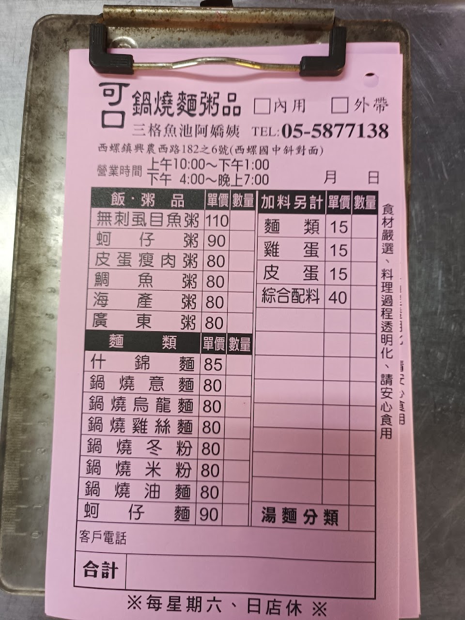 2024最新在地推薦餐廳的菜單_可口鍋燒麵粥品的菜單、圖片