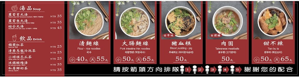 大腸麵線 豬血糕 甜不辣 大腸麵線 魚丸湯 肉圓 麵線