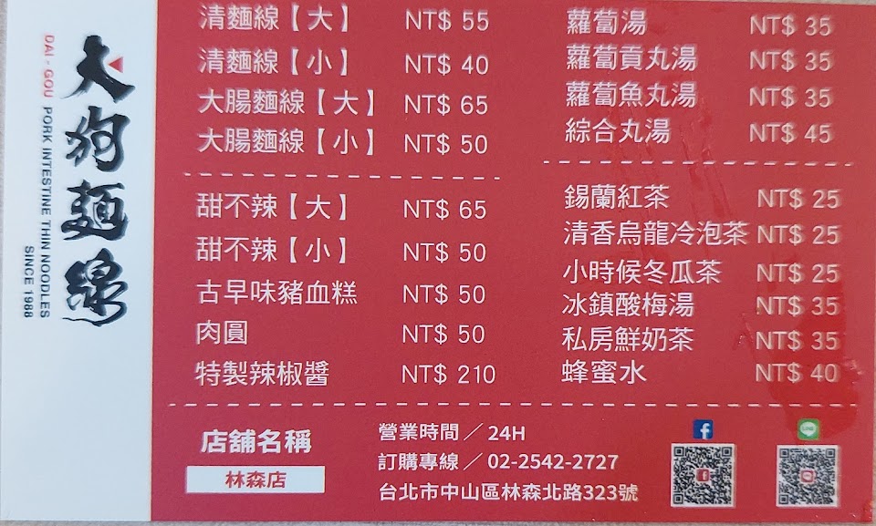 在林森北路的地段麵線的價格算是良心價。中規中矩的口味,大腸不是常見的醬油滷過而是水煮,蠻考驗清潔大腸的功力。 服務 外帶 餐點類型 午餐