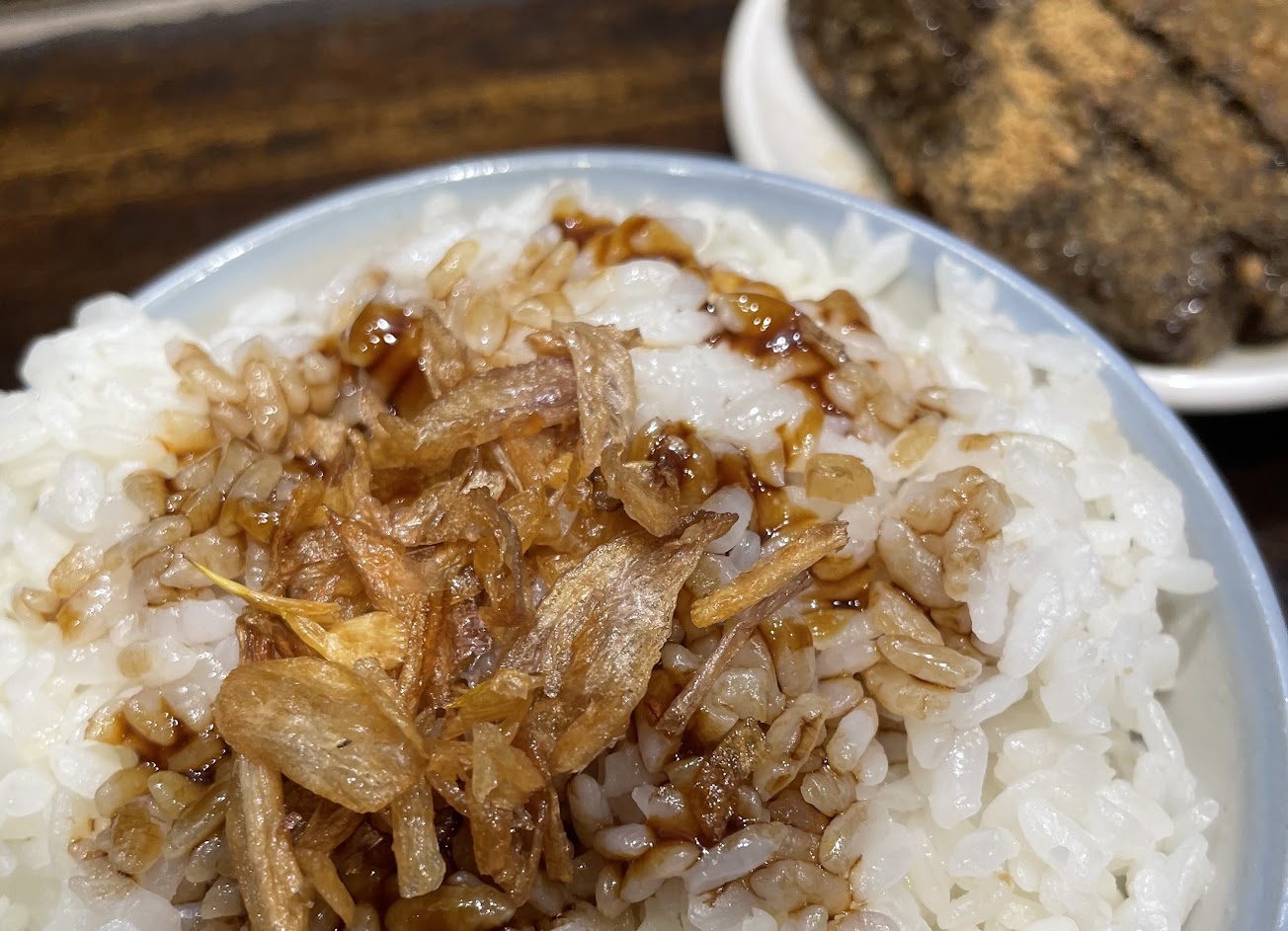蔥油飯,大概就是吃醬油(膏),香味濃度稍稍淡了點。