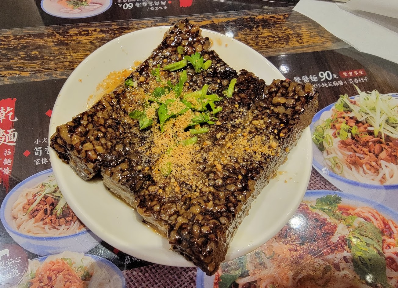 算是有特色的麵店,也有幾個品項是這家店獨有,像豆腐湯這個產品,一碗高湯中只放一塊豆腐,雖然豆腐本身並沒有魯出什麼特殊的味道。不過店家有很多醬料可以讓你沾著吃(甜辣醬、辣油、蒜味醬油)。