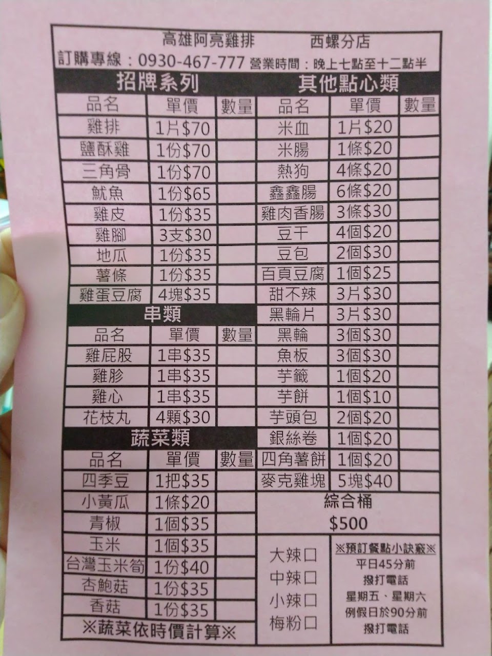 2024最新在地推薦餐廳的菜單_西螺阿亮雞排旗艦店的菜單、圖片