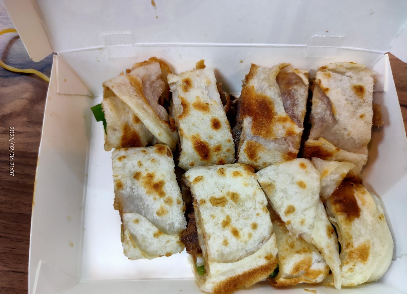 利用會員買一送一優惠。牛肉斤餅份量十足,餅皮現點現做~內餡牛肉也很好吃。尤其買一送一超划算!