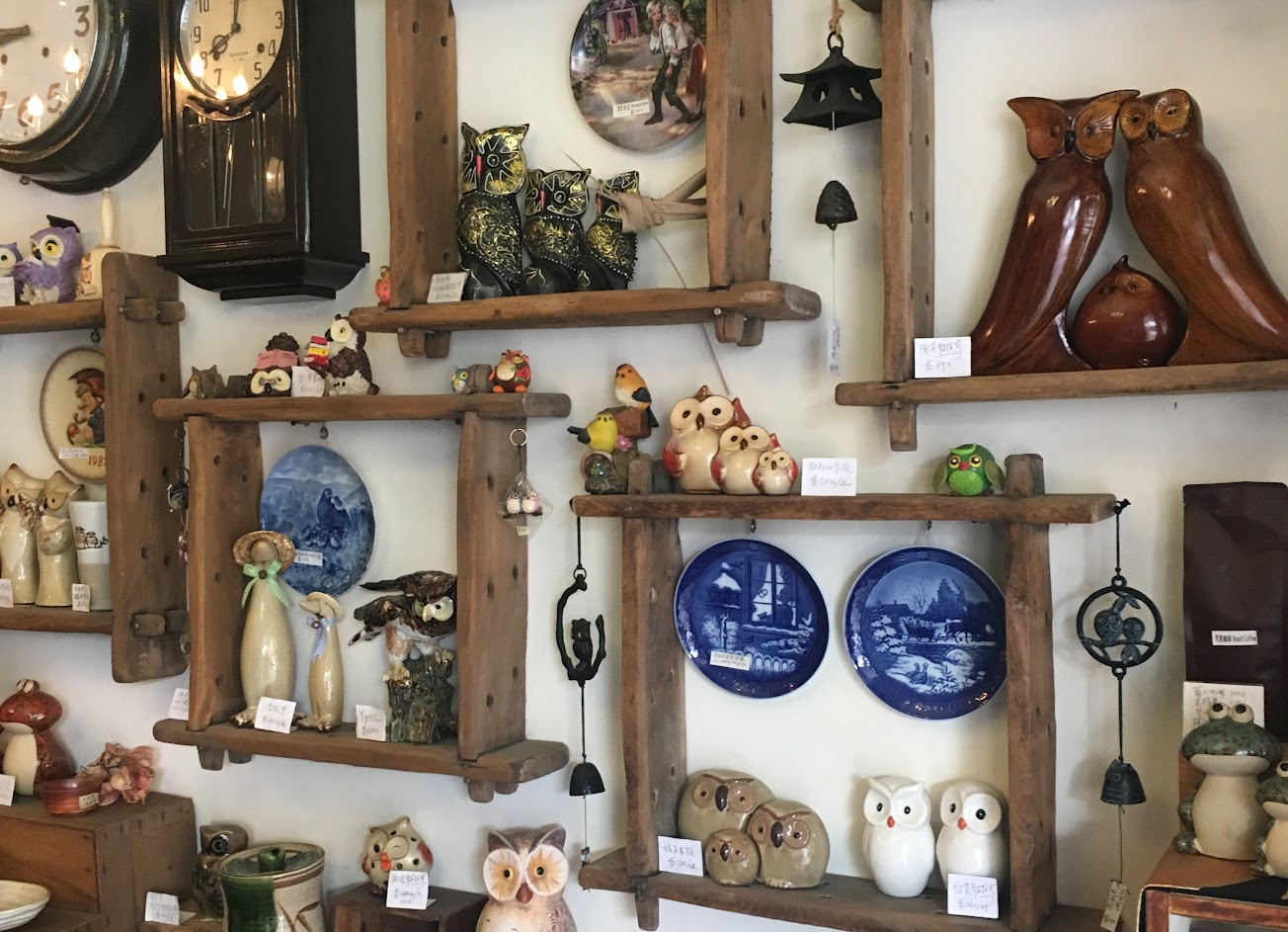老闆一家人很熱情,超愛店裡販售日本進口的各種貓頭鷹飾品&杯盤,還可在裡面享受香醇的咖啡…