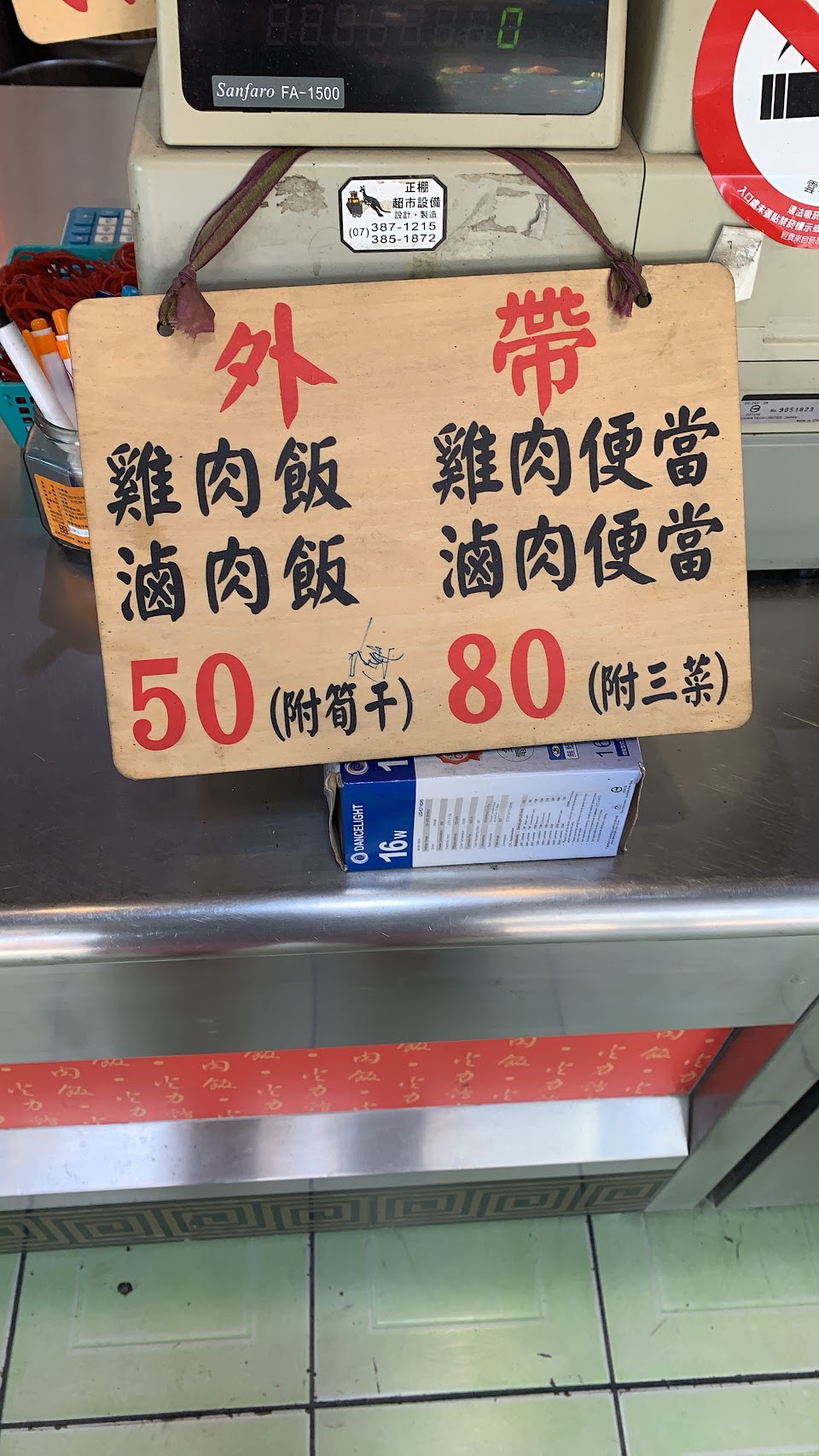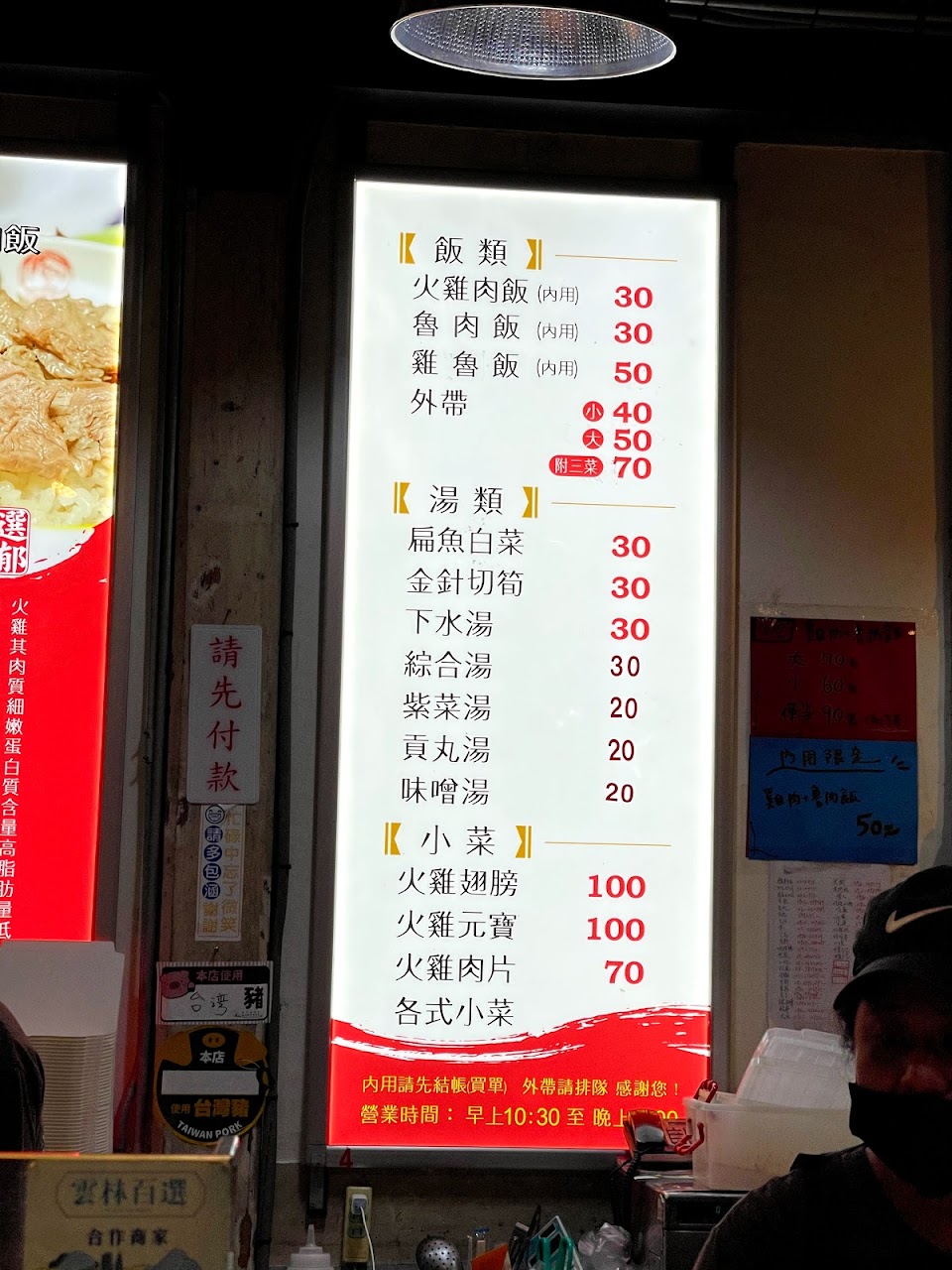 點雞肉飯和小菜、湯外帶,還特別交代小份35塊的就好,結果結帳時還是包大份的。問說為什麼?店家回應外帶沒有分大小,一律包50塊的。這時火氣有點上來,回應說,那一開始我要求小份的時候,店家就要告訴我外帶一律包50塊的。沒想到店家竟然回應說板子上都有寫。問題是”外帶50塊”的板子是放在另外一個地方。就算是同樣放在點餐看板上,客人也有可能沒注意到啊!這種服務只能給1顆星了