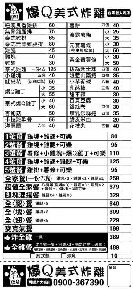 2024最新在地推薦餐廳的菜單_爆Q美式炸雞西螺老大媽店的菜單、圖片