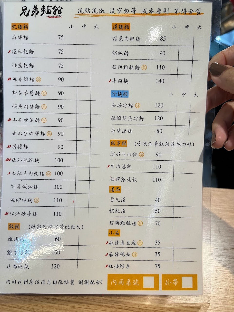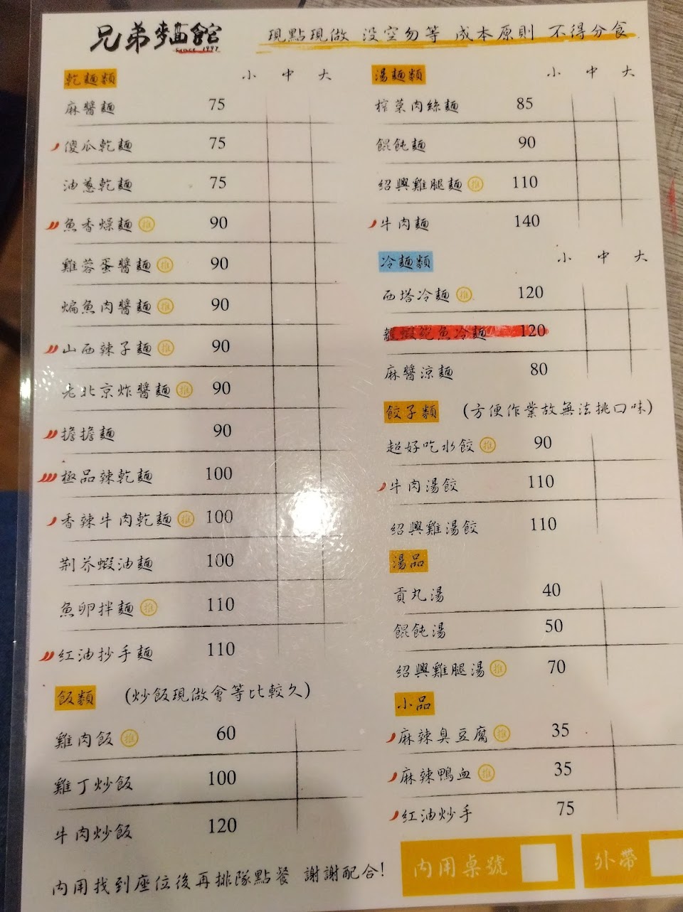 2024最新在地推薦餐廳的菜單_兄弟麵館的菜單、圖片