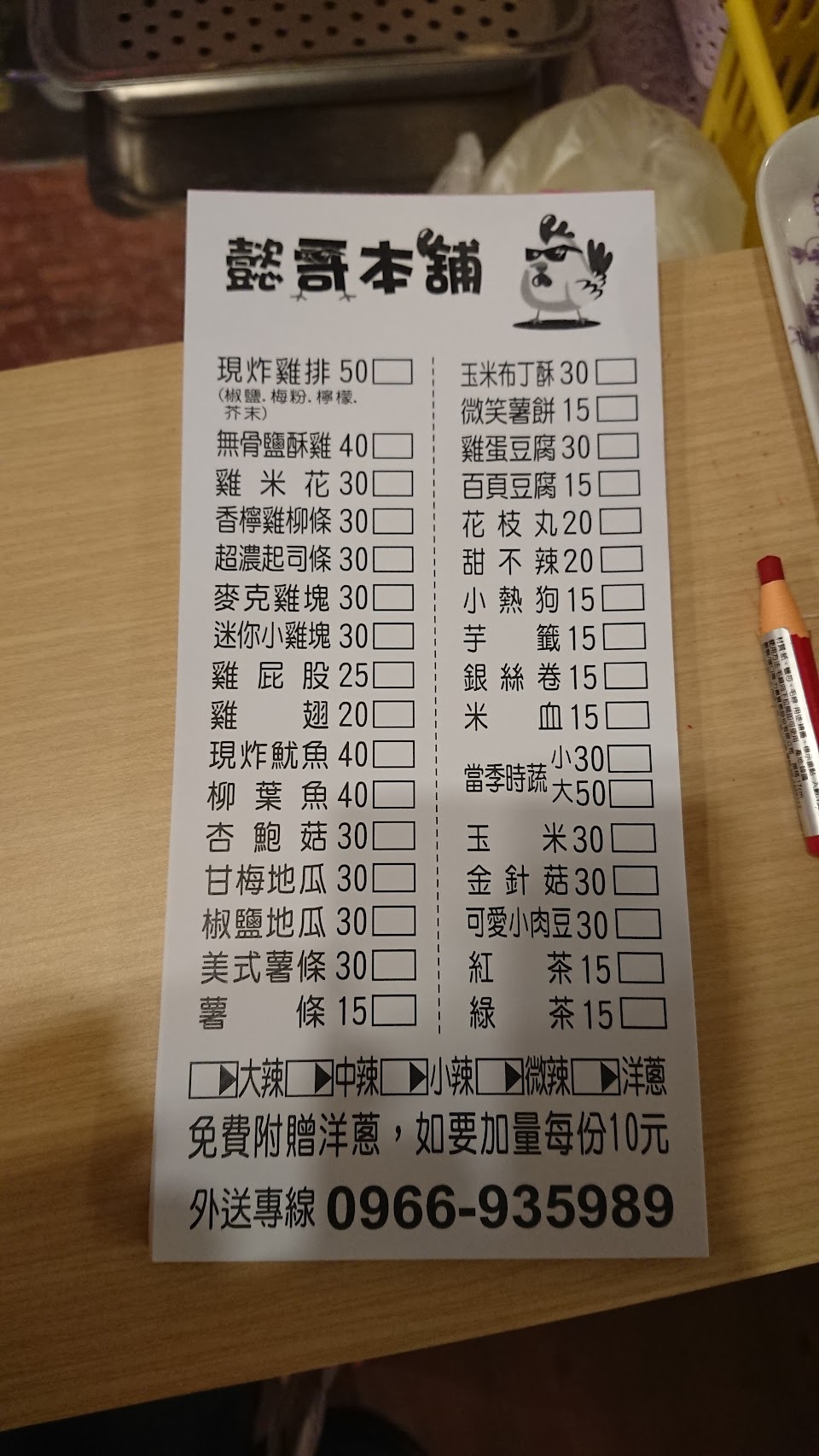 點了雞排、鹽酥雞、甜不辣跟炸米腸