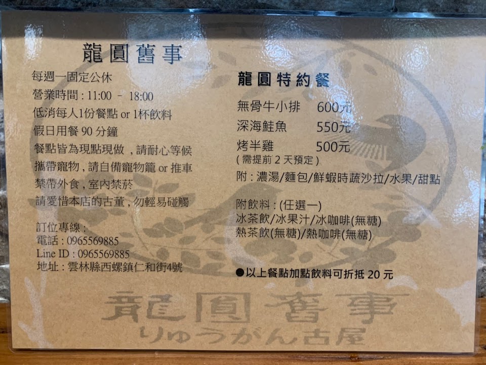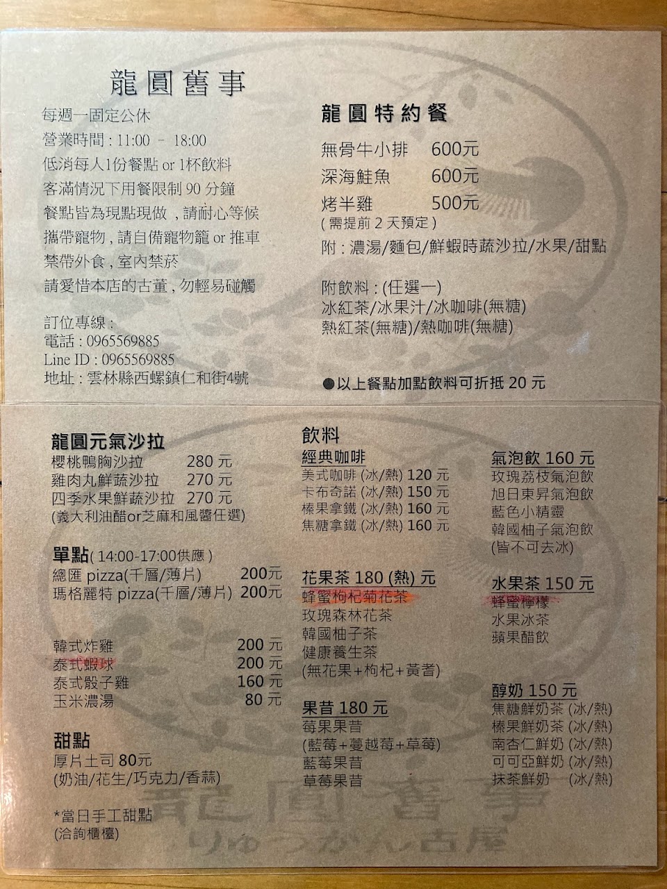 2024最新在地推薦餐廳的菜單_龍圓舊事的菜單、圖片