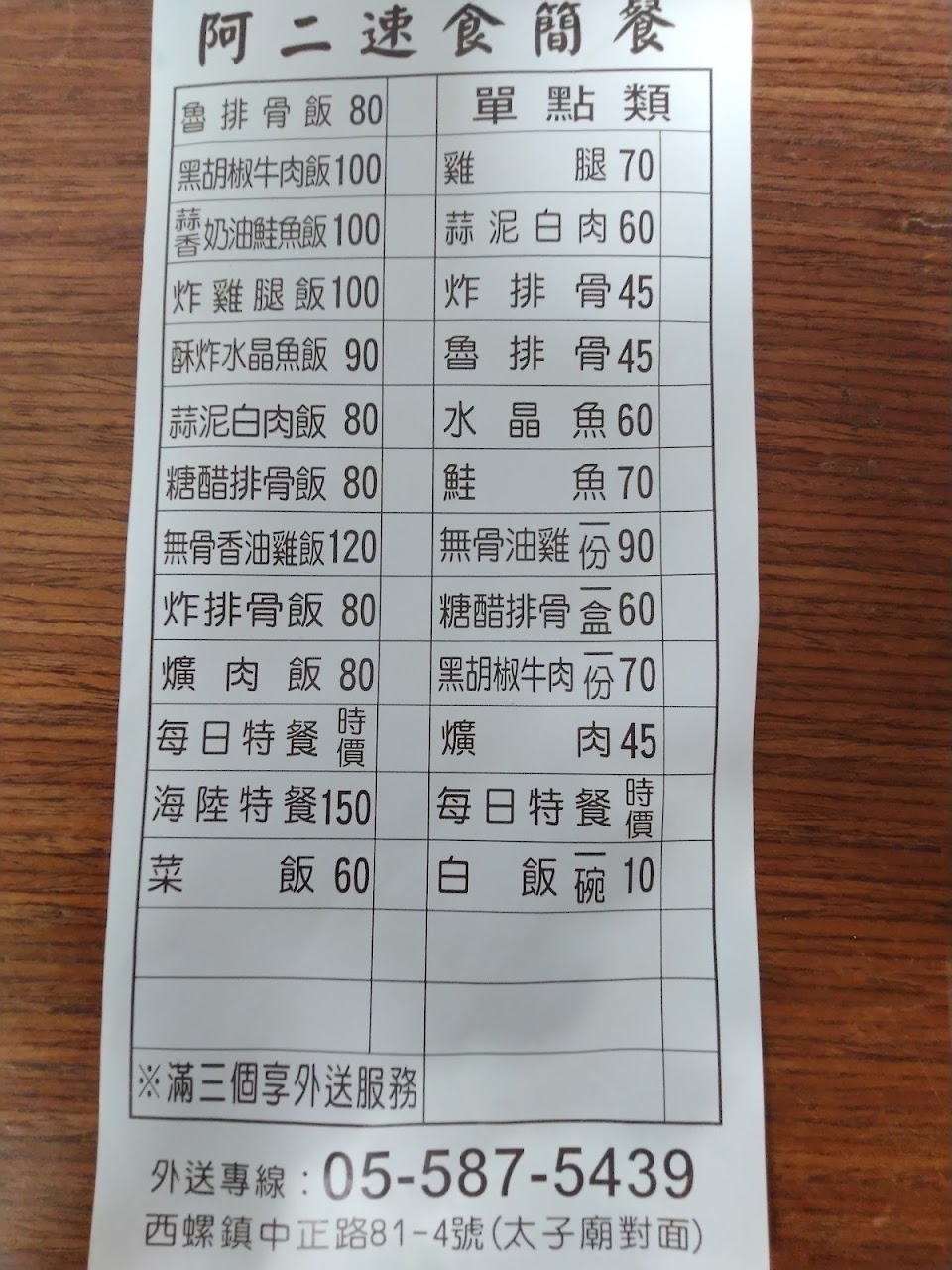 2024最新在地推薦餐廳的菜單_阿二速食簡餐的菜單、圖片