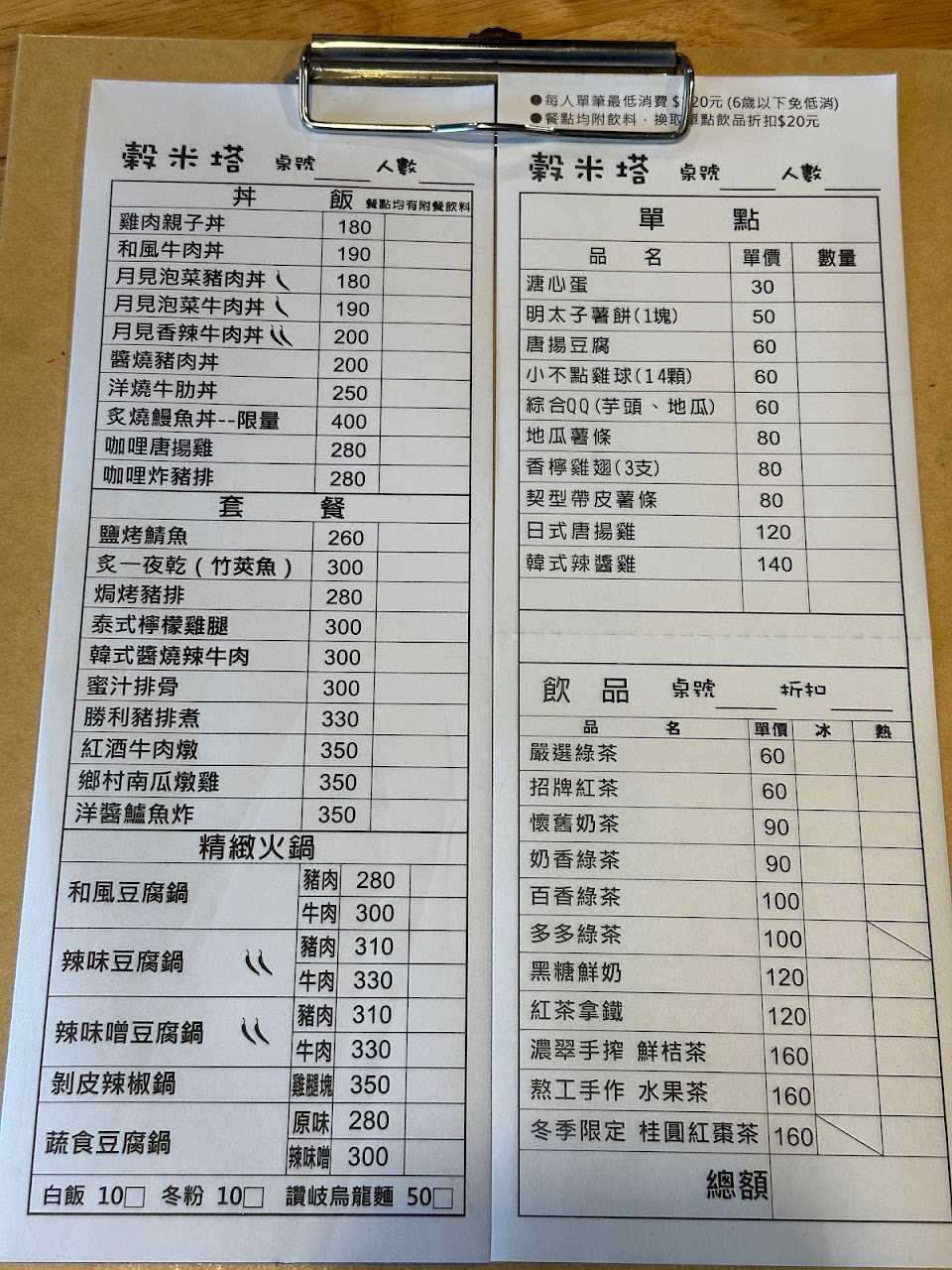 2024最新在地推薦餐廳的菜單_榖米塔的菜單、圖片