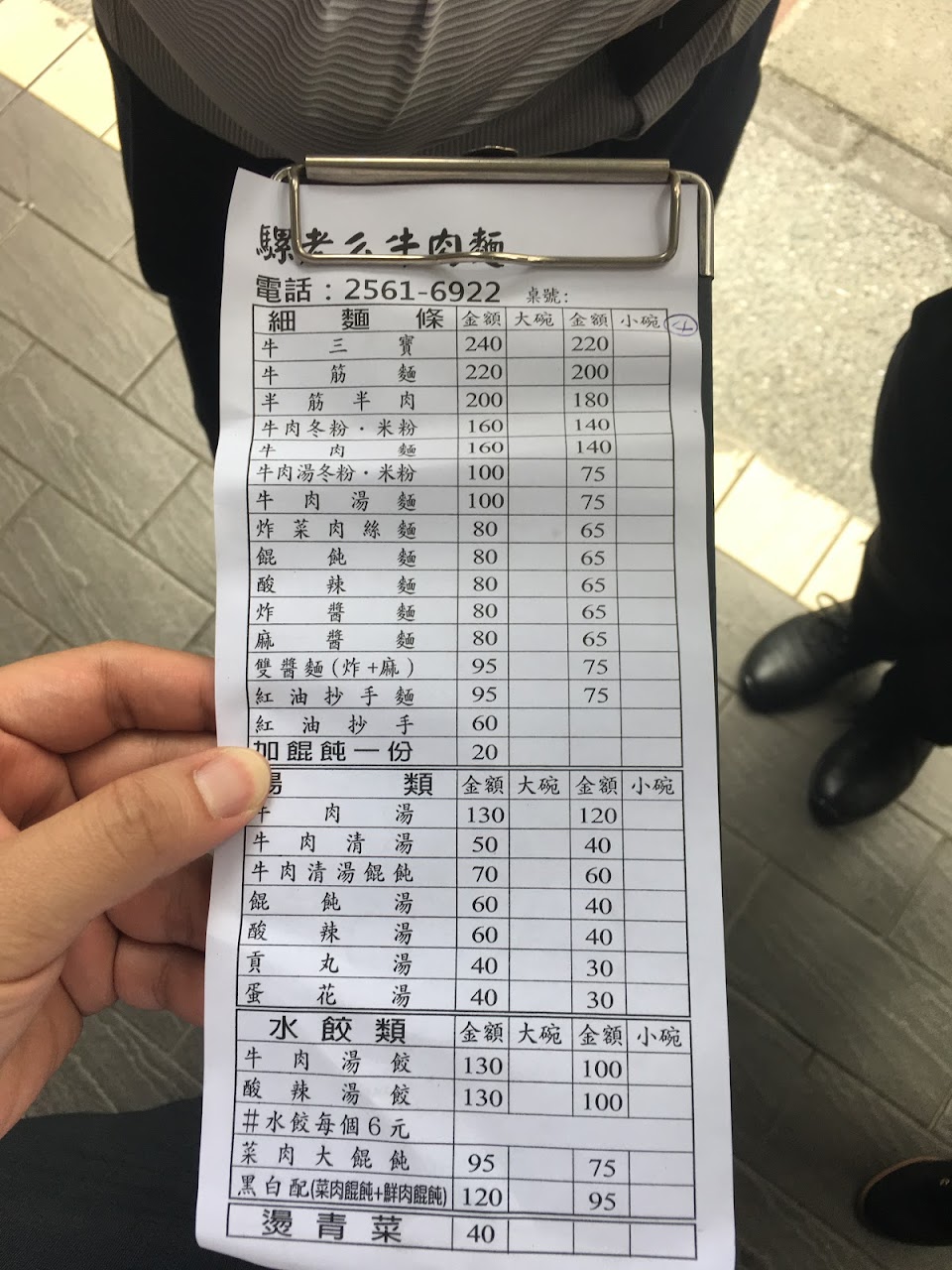進店前抱著頗大期望,畢竟門口掛著老店的招牌… 不過牛肉麵端上來時竟是細麵,先扣點分數,吃進嘴裡味道並沒讓人驚艷,牛肉吃起來也不算優,整體而言是頗失望,難怪店內其他客人似乎都沒人點牛肉麵。
