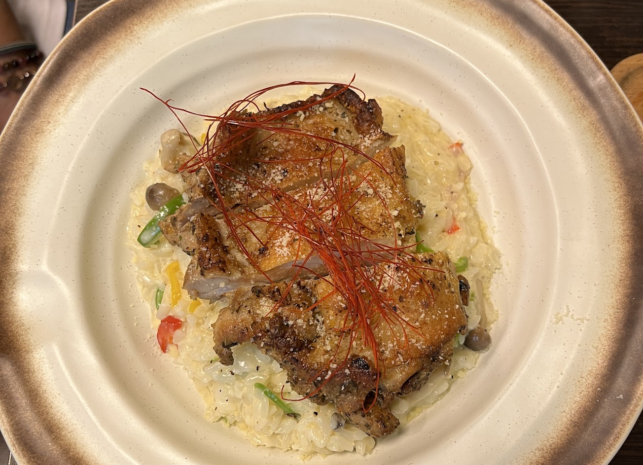 脆皮雞胸奶油燉飯 麻香辣味紅醬香煎脆皮雞腿燉飯