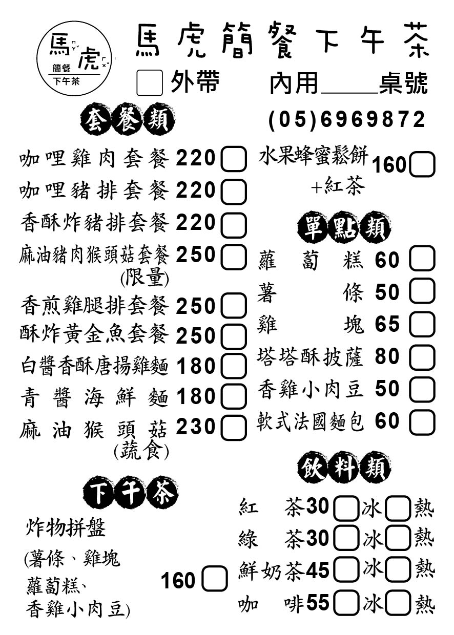 2024最新在地推薦餐廳的菜單_馬虎 簡餐.下午茶的菜單、圖片