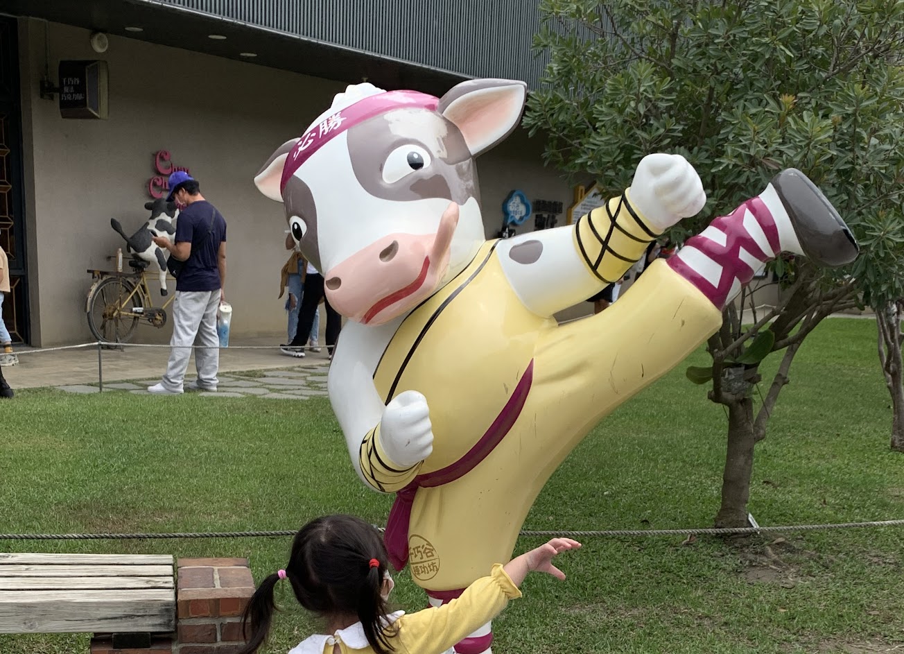 還可以餵牛?,牧草一把30元。園區很多個特色牛公仔可以拍照?,大家會模仿它的動作拍照,蠻有趣的?