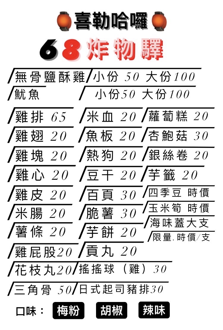 2024最新在地推薦餐廳的菜單_68炸物驛(喜勒哈囉)的菜單、圖片