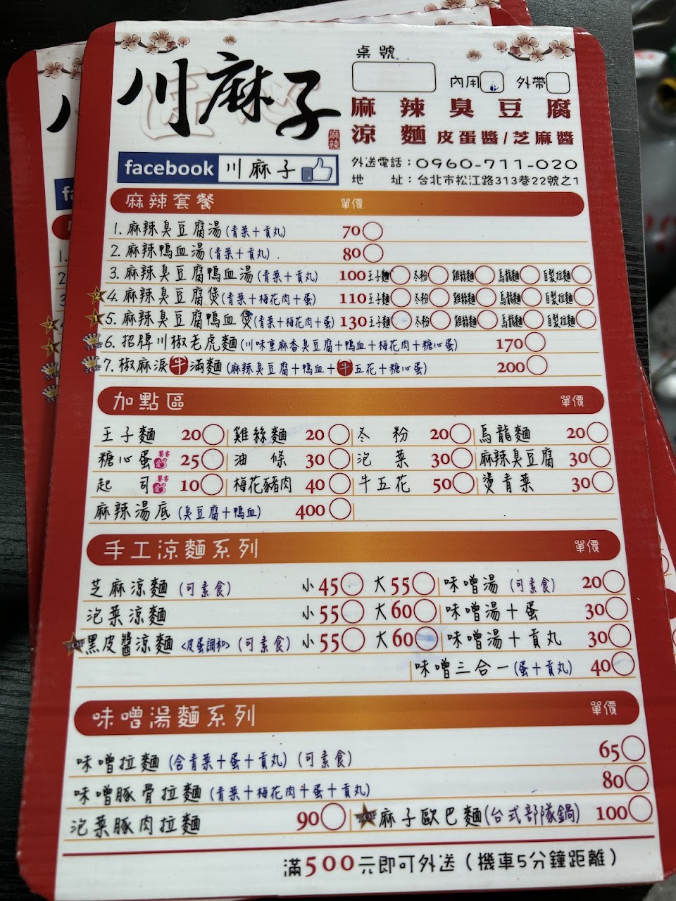2024最新在地推薦餐廳的菜單_川麻子 涼麵|麻辣鴨血臭豆腐的菜單、圖片