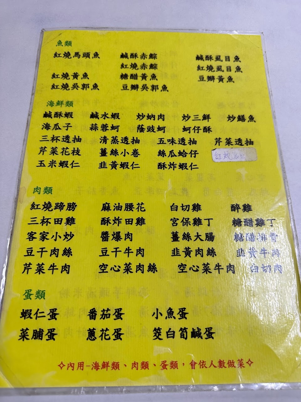 好吃,說實在的單價不貴。 但小缺點是菜單上沒有價目表,價格不透明。 最後結帳才會知道多少錢。 白斬雞150元 三杯透抽350元 牛肉炒麵70元 蝦仁蛋100元 什錦湯60元(火鍋料居多) 相較之下透抽的價格怎麼差降多?不曉得。