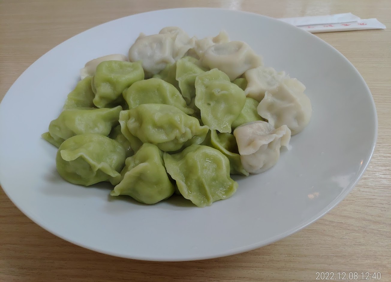 水餃的價格確實是不便宜,但餃子皮有嚼勁,饀料也很香,大白菜水餃裡面有蝦米,老闆娘還會再向客人確認會不會對蝦子過敏。