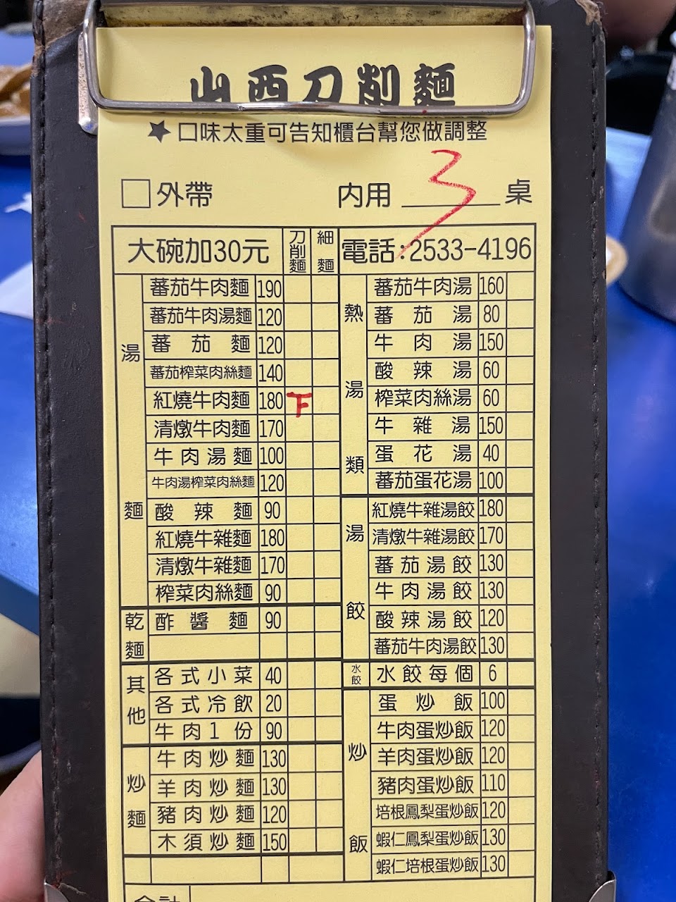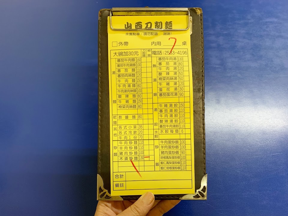 2024最新在地推薦餐廳的菜單_山西刀削麵 (大直店)的菜單、圖片