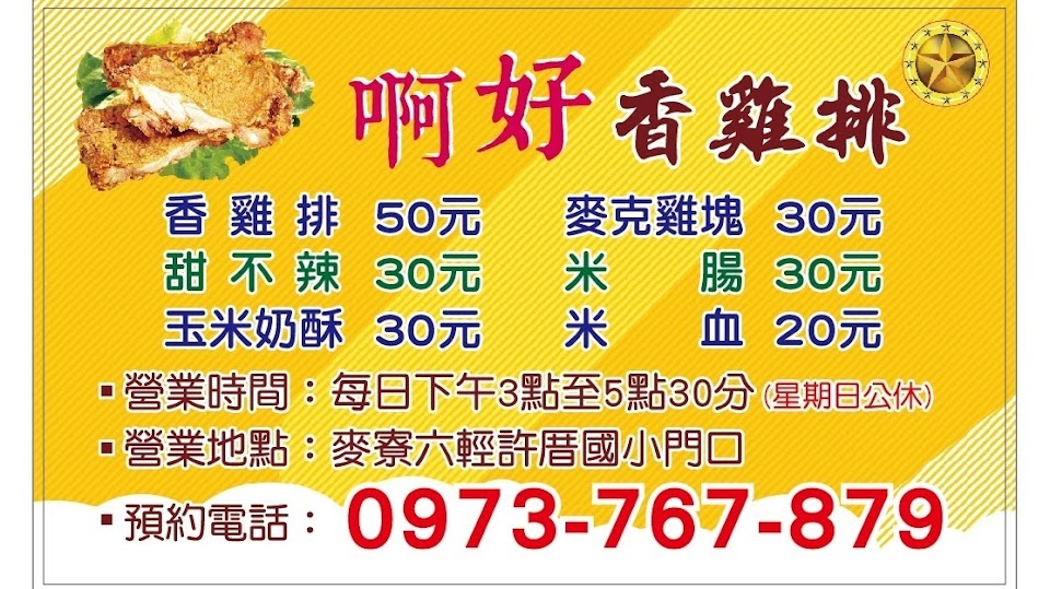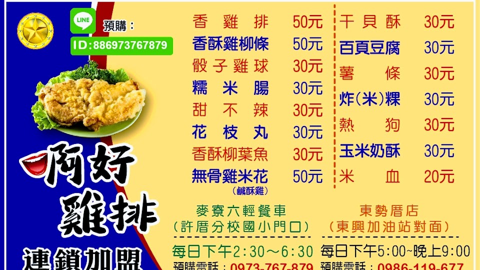 2024最新在地推薦餐廳的菜單_啊好雞排 麥寮六輕餐車的菜單、圖片