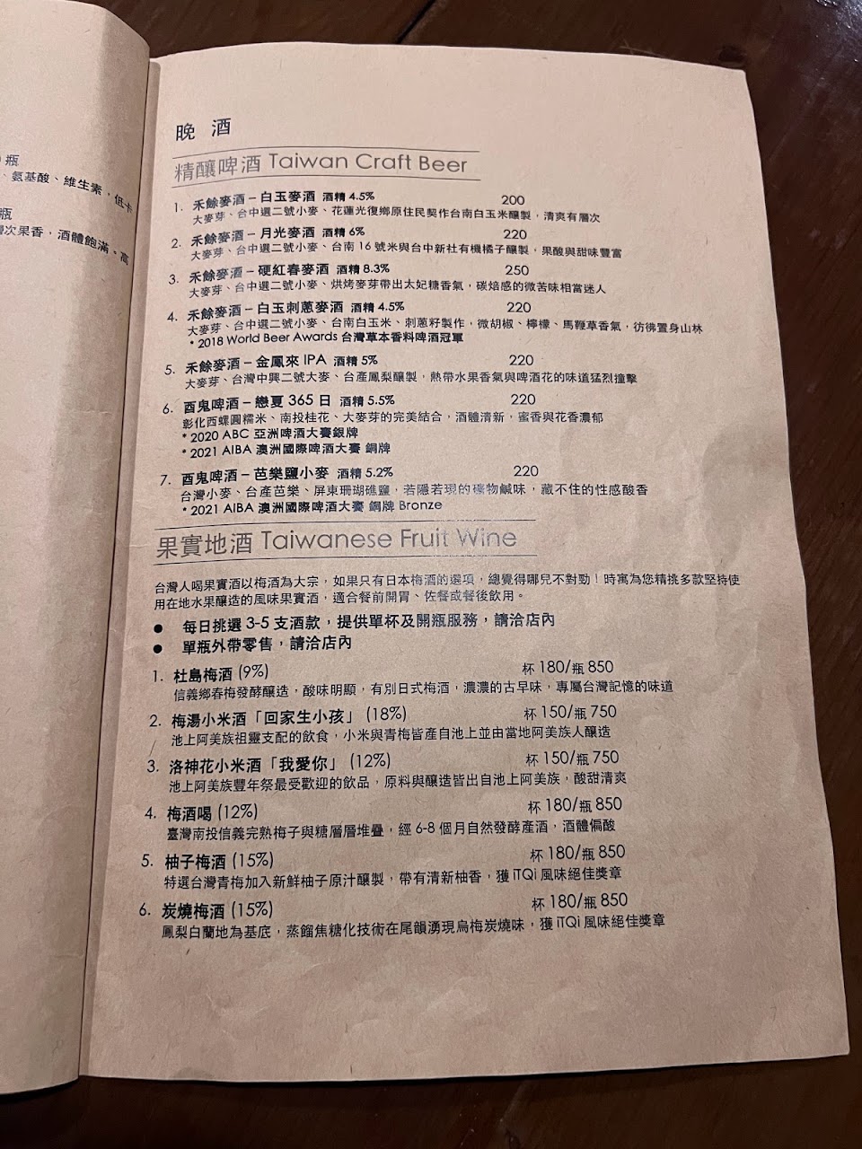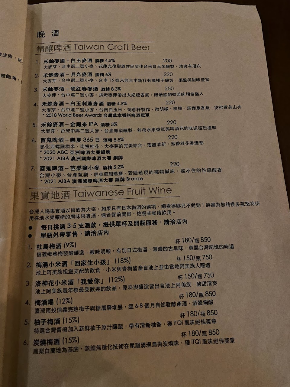 另有幾種台灣精釀啤酒和果實酒 以及其他酒類 但當天沒喝 留著下次喝:)