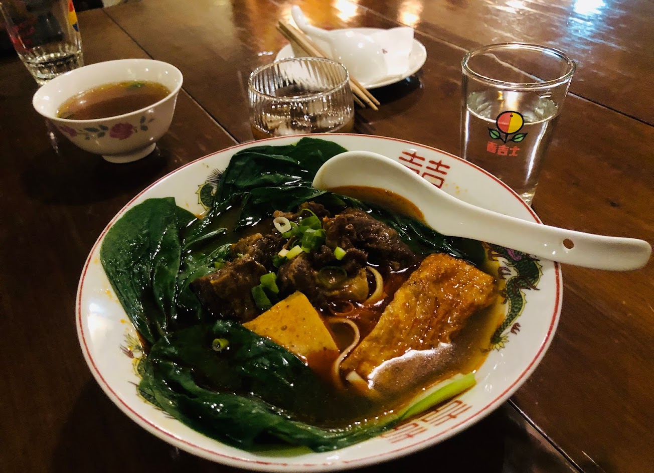 在台灣老房子裡享受牛肉麵和酒精感覺很奇怪。