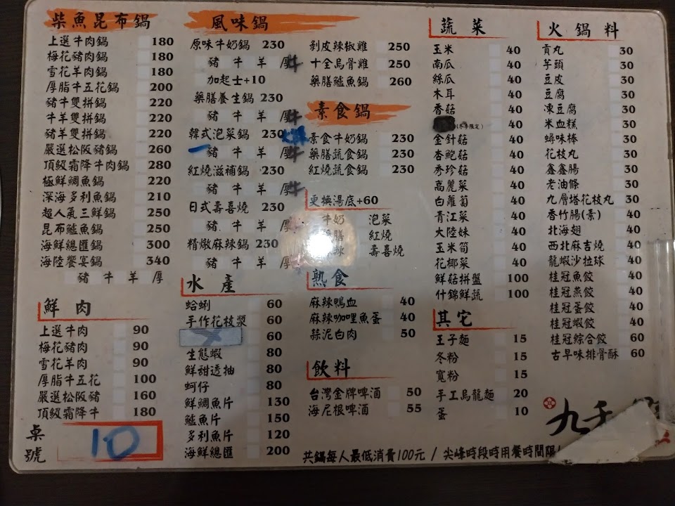 2024最新在地推薦餐廳的菜單_九和野火鍋的菜單、圖片